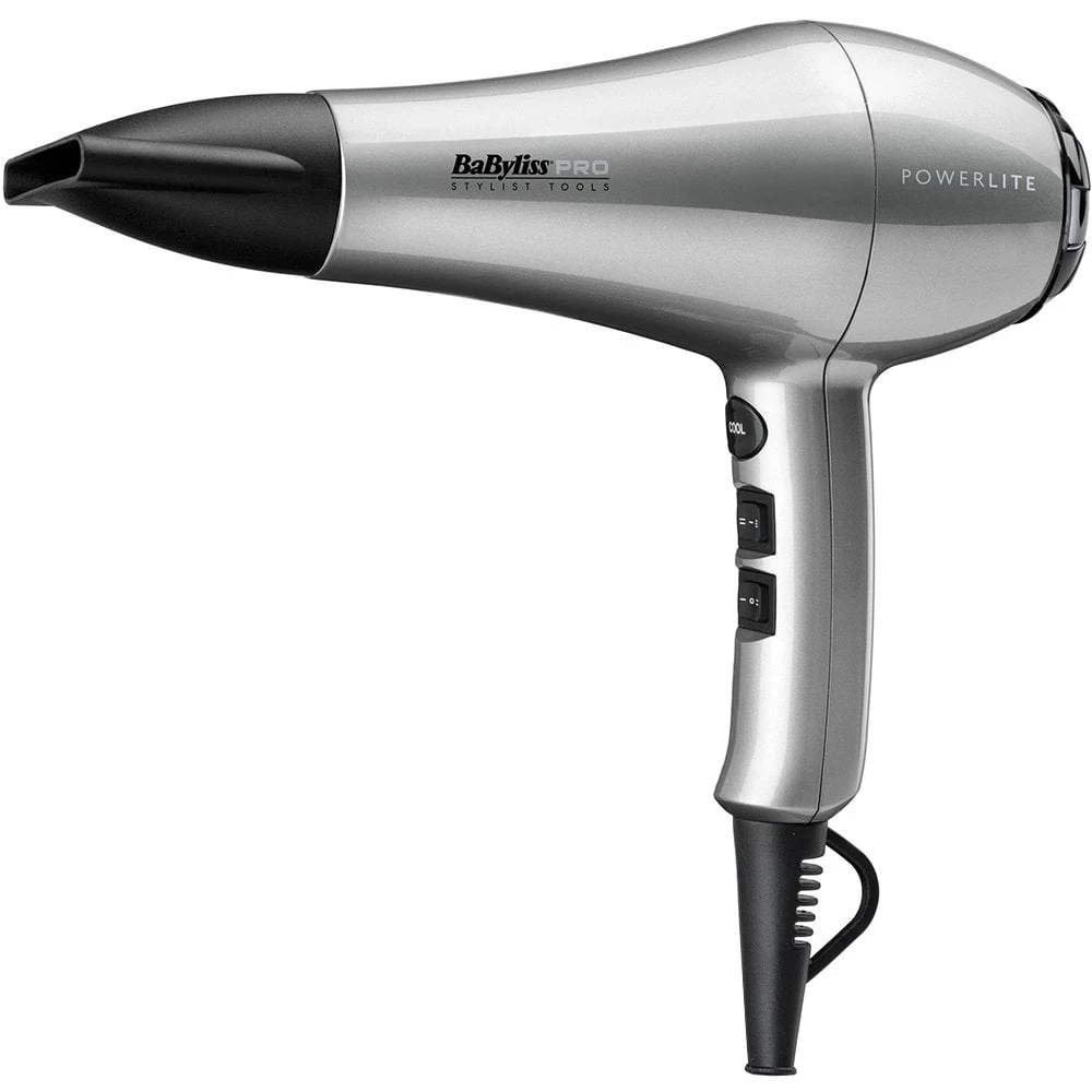 Babyliss Pro Powerlite Dryer Silver is a lightweight dryer weighing only 445g which makes it 1/3 lighter than most dryers! The Babyliss Pro Powerlite Dryer features a unique Super Quiet 1900w LHT Motor with high torque power that sets new standards in lightweight design with 6 heat settings and gives you control for all types and conditions of hair. The LHT professional motor produces one of the most powerful performances of air flow and air volume.
