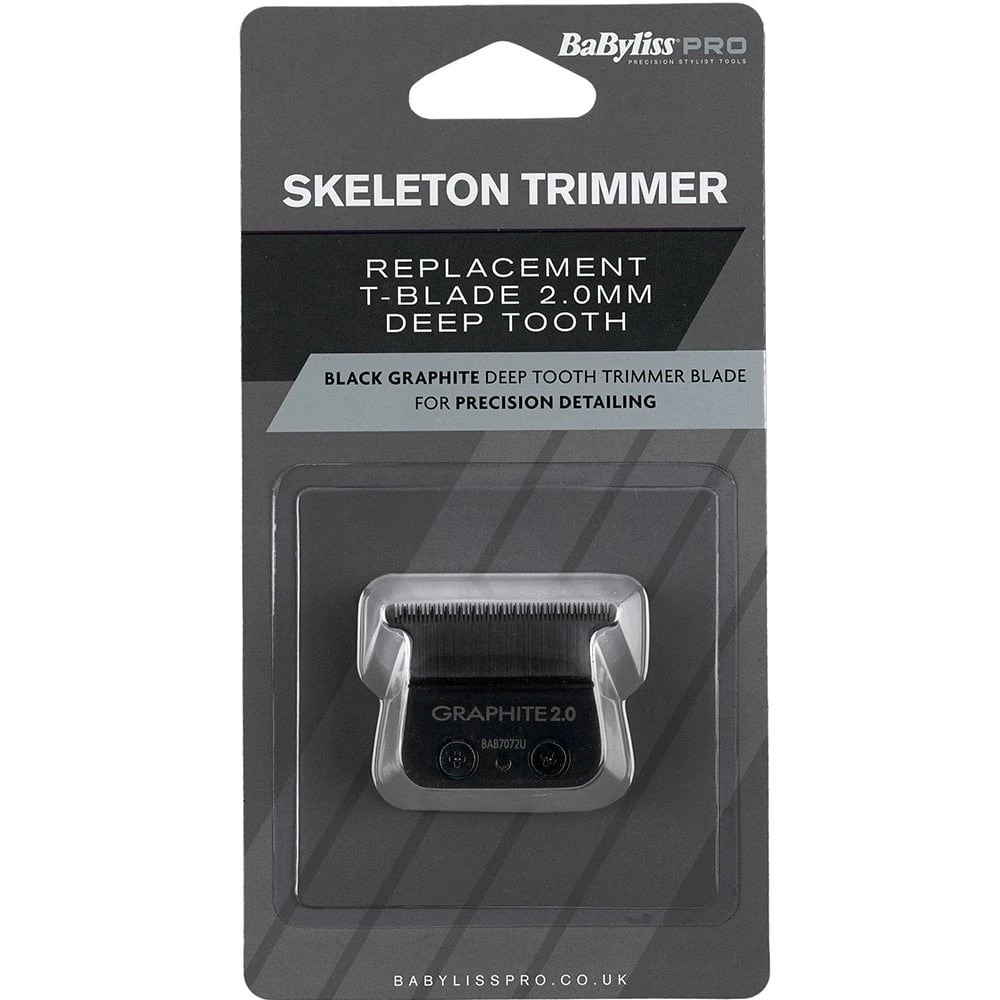Babyliss Pro Super Motor Skeleton Trimer Graphite 2.0 Replacement Blade is an extra wide black graphite deep tooth replacement T-Blade set for the Skeleton Trimmer.