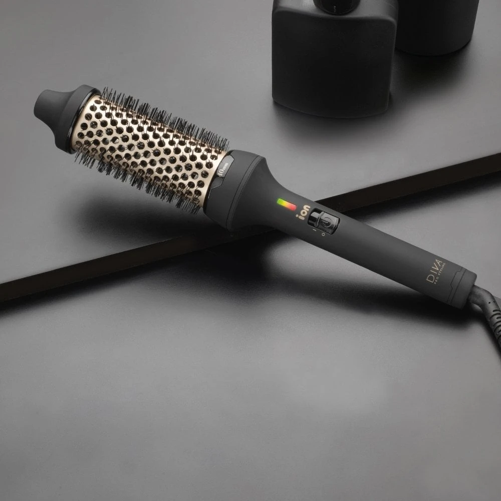 Diva Pro Styling Ceramic Hot Brush 40mm has a ceramic barrel infused with Macadamia Oil, Argan Oil & Keratin to create an ultra-shiny, smooth and salon professional finish. Can be used to quickly create curls, waves and body, for styling straight with shine or for use with a hair dryer for more control when blow-drying hair.