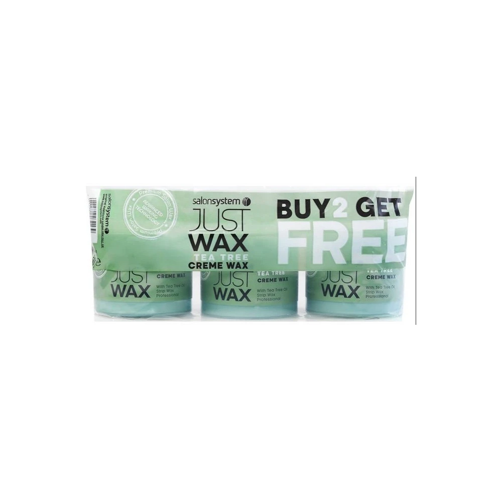 Salon System Just Wax Tee Tree Crème Wax (3 x 450g) is a superior-quality, high-performance, no nonsense wax which contains antiseptic Tea Tree. It provides smooth, sensational looking skin and is designed for removing unwanted hair from all areas of the body. This package contains three packs of 450g wax.