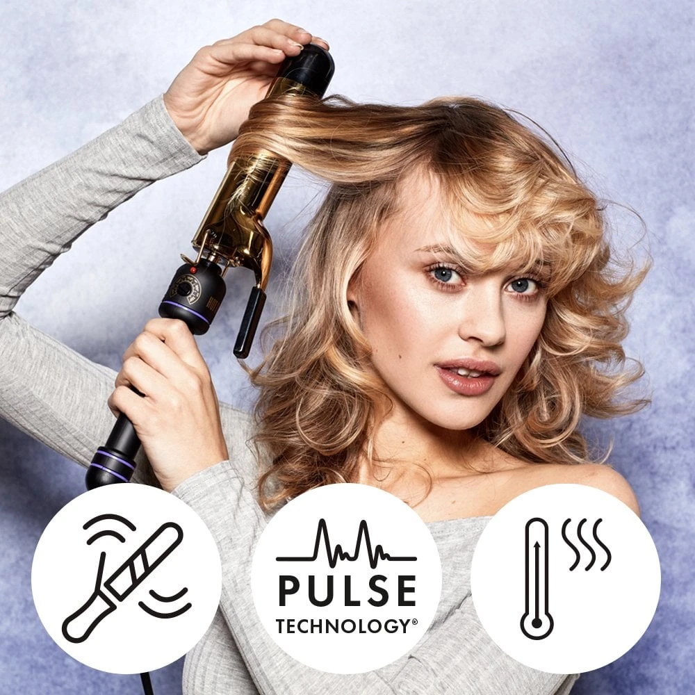 Hot Tools Pro Signature Gold Curling Iron 32mm creates long-lasting, shiny, and bouncy classic curls and waves with its gold-plated barrels providing faster styling. Exclusive Pulse Technology ensures fast heat up and instant heat recovery, maintaining even heat.