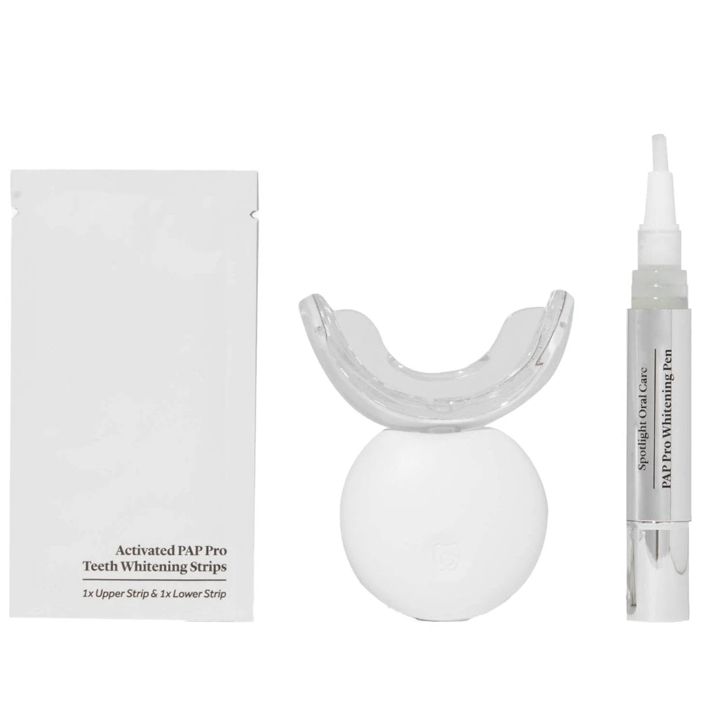 Blue light has been shown to accelerate the action of active ingredients, including Hydrogen Peroxide and PAP+, both of which posses oxidizing properties to break down surface stains whilst also improving the overall shade of the teeth. Red light is shown to soothe and rejuvenate gum tissue, helping to reduce sensitivity and gum pain whilst improving their appearance. Used in conjunction with the provided Spotlight Oral Care products, this kit will have you smile beaming like never before in no time! Cruelty-free.