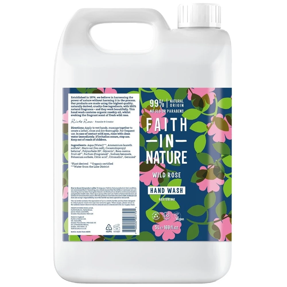 Faith In Nature Wild Rose Hand Wash (5000ml) is a caring vegan hand wash which cleanses gently without stripping the skin of its natural oils.